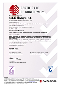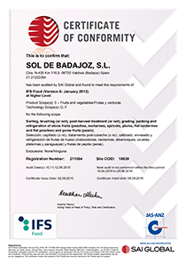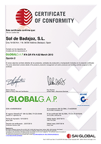 La empresa cuenta con certificaciones de calidad, como son PRODUCCION INTEGRADA, GLOBALGAP, BRC, IFS.